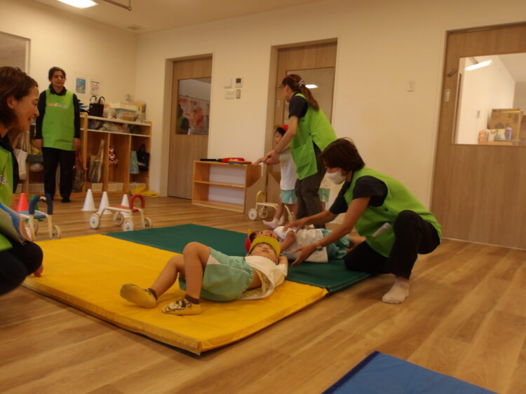 山に登ったり、マットの上をはいはいしてゆっくり進みました