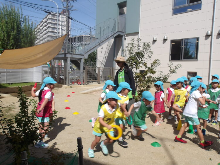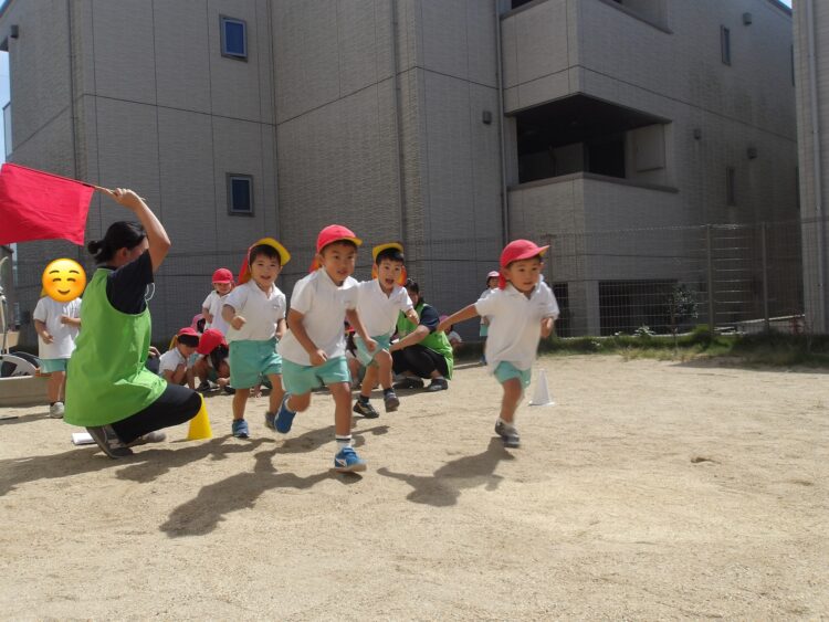 いい天気の中、園庭ではかけっこをしました!