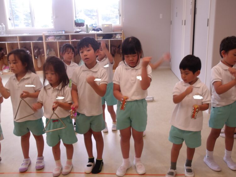 カスタネットなどいろいろな楽器を使ってとんぼの歌の演奏もしました♪
