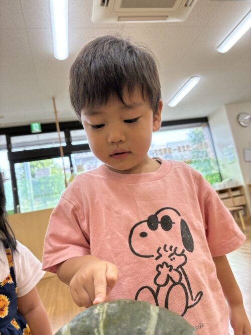 朝の時間にかぼちゃの皮に触ってみました!