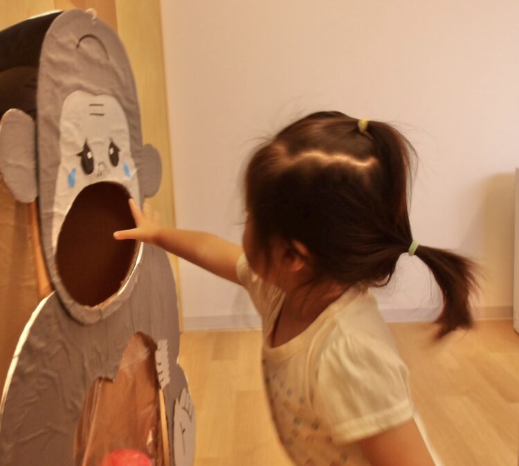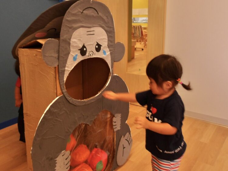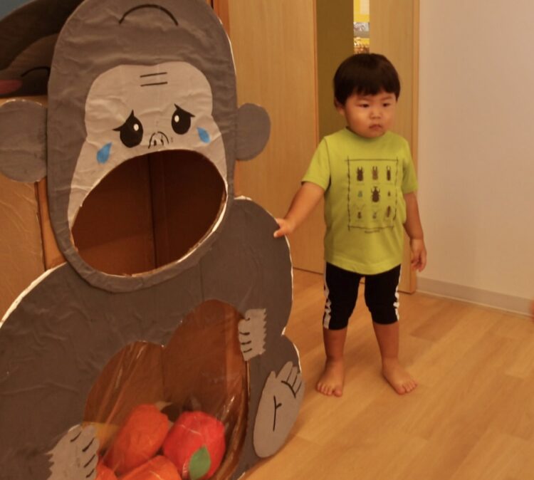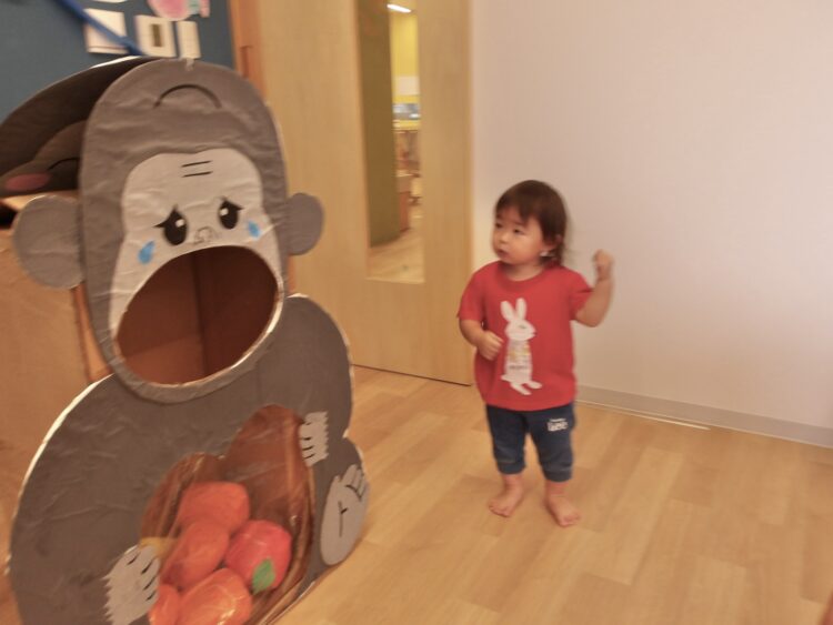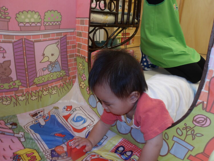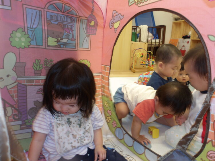 保育士が見本を見せたり、誘ったりすると興味を持って中に入ってお家の中をキョロキョロと見渡していましたよ