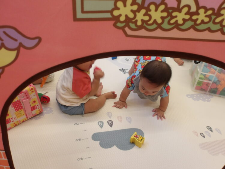 ハイハイをしてお家のところへと自分で頑張って向かっています