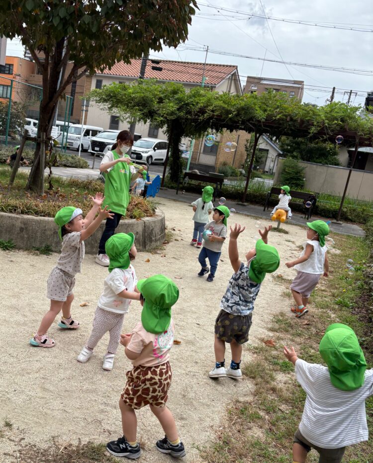 お友だちと一緒に運動会のかけっこをしたり、シャボン玉に夢中になったりと、それぞれが思い思いの遊びを楽しんでいました。
