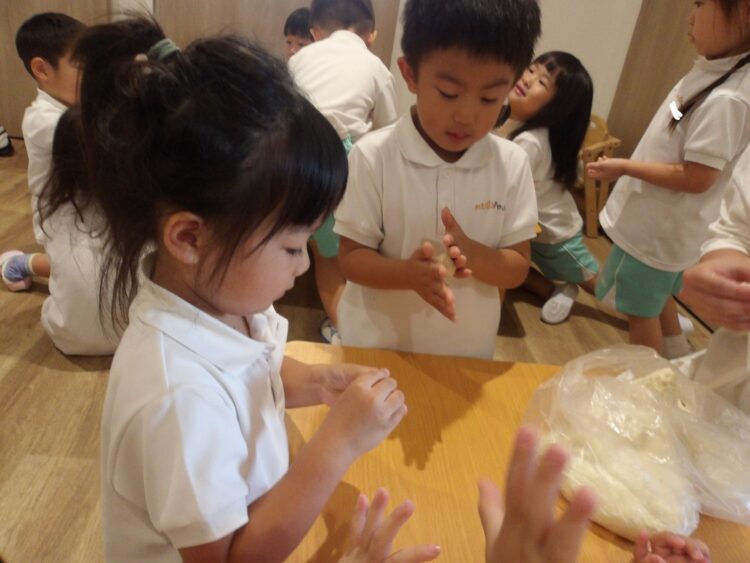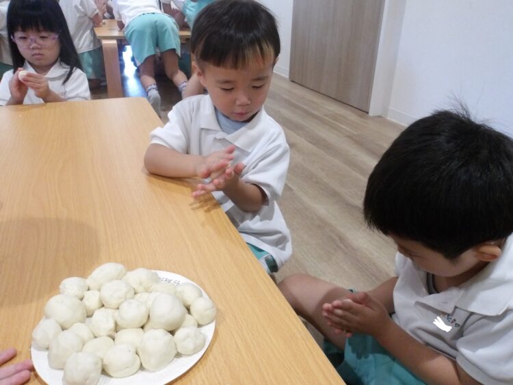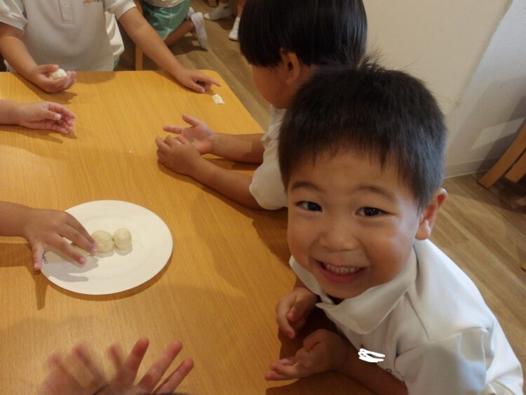 お月見会のあとは、小麦粉粘土を使ってお月見団子をつくりました!