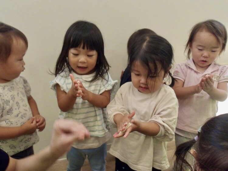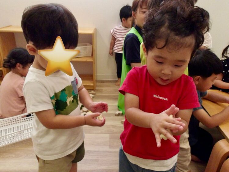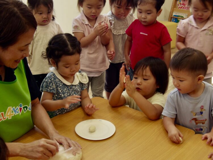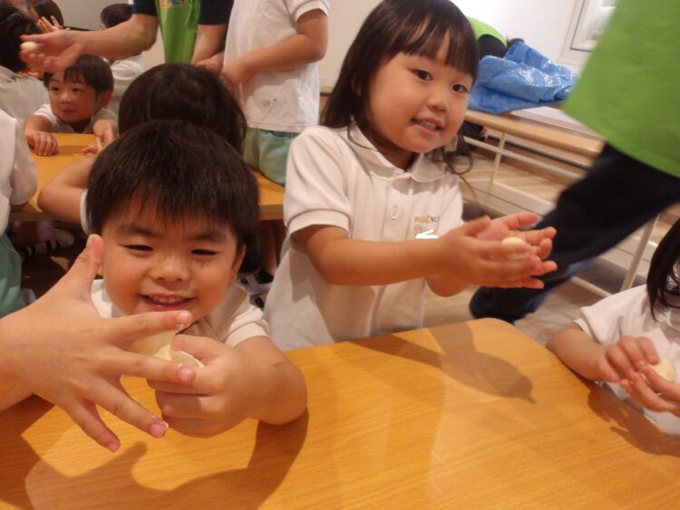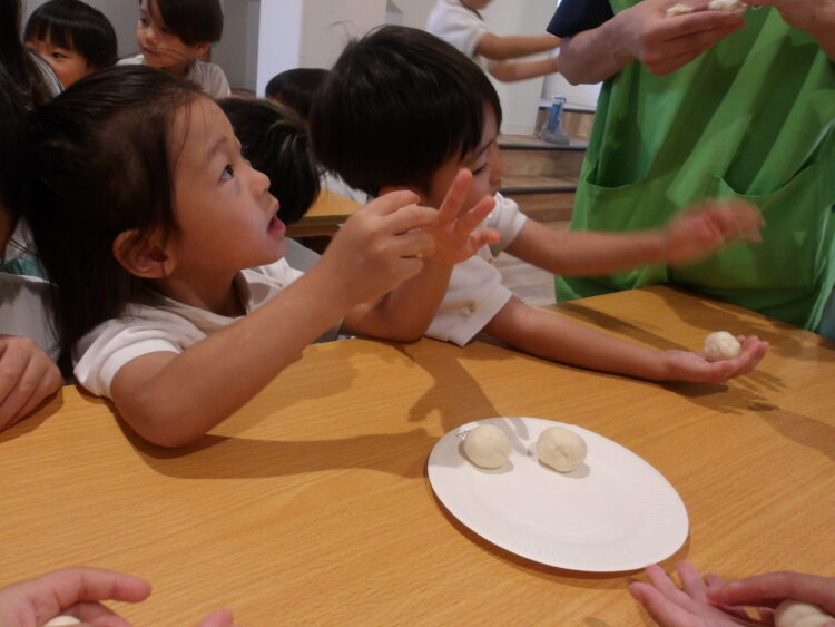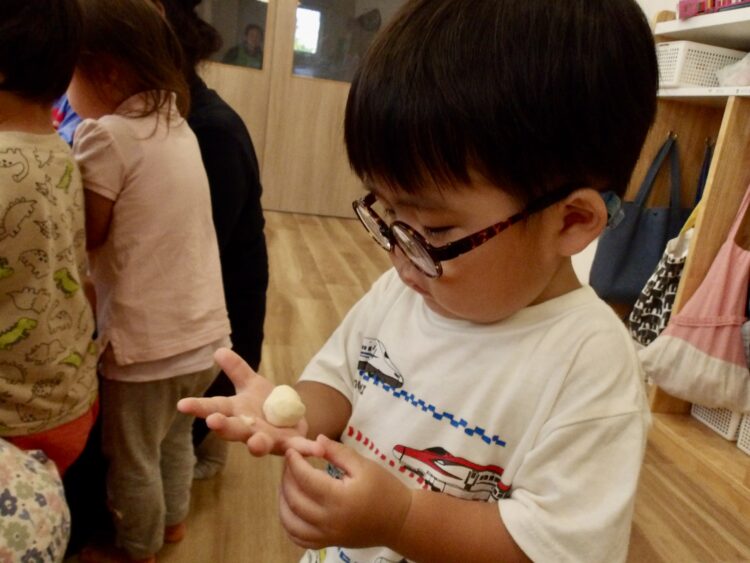 粘土の感触を楽しみながら、みんな上手に粘土を丸めていました