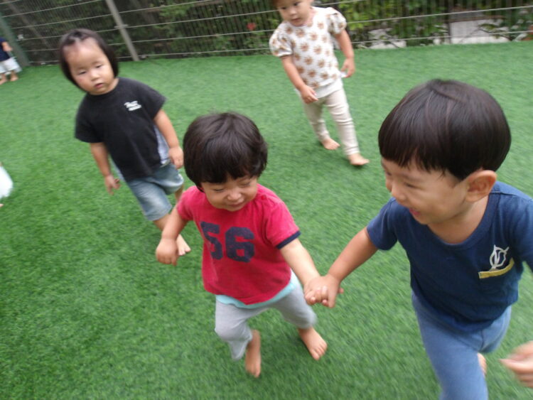 2人が3人になって輪になって丸くなって遊んでいる時もありました