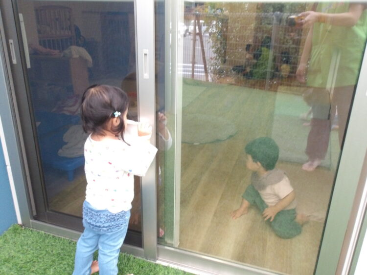 お部屋の中の窓からはお外で遊んでいるうさぎ組さん俺お友達を見ていましたよ