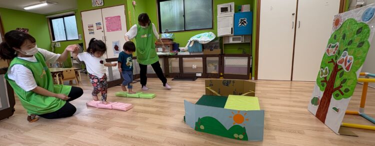 「何が始まるの」と不思議そうに見ていた子も、先生の見本や友だちのやり方を見て、楽しんで取り組みました☺️