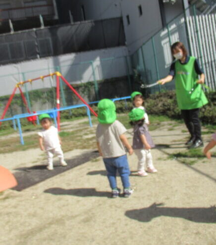 子どもたちも少し汗ばみながら、元気いっぱい戸外遊びを楽しみました🌞