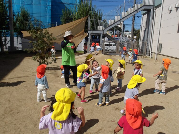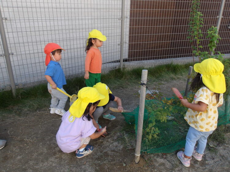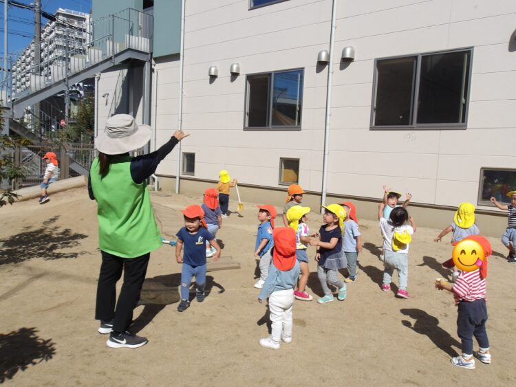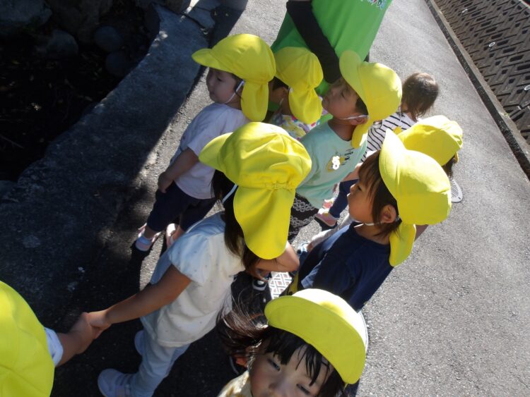 その後は園の周りをお散歩。みんなで手を繋ぎ歩きました