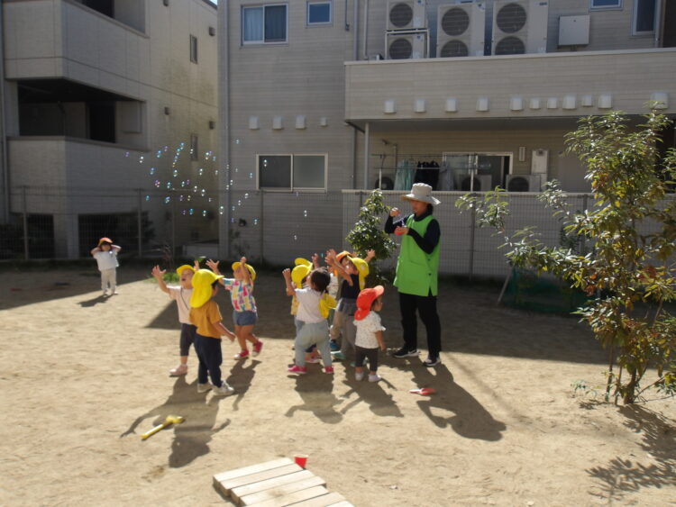 みんな大好きなシャボン玉が登場!大はしゃぎで追っかけています😊
