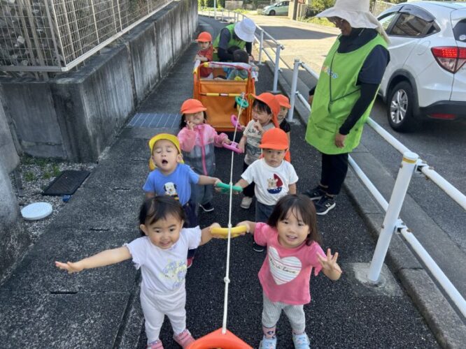お散歩だいすきなみんな、歩くたび「おー!!」と声を出して気合いばっちりです👌♡テンションが上がっております😆