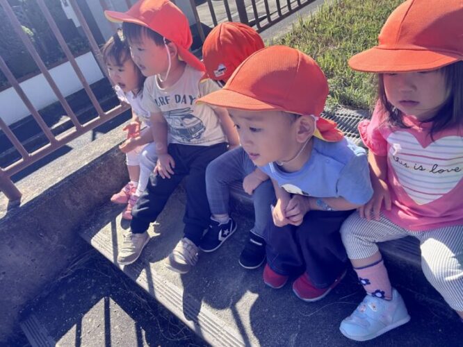 「がんばれ〜お兄さん〜🩷」とみんなが可愛らしい笑顔でエールを送っていました!!!すると!お兄さんたちが気がついてくださって、手を振ってくださいました👋