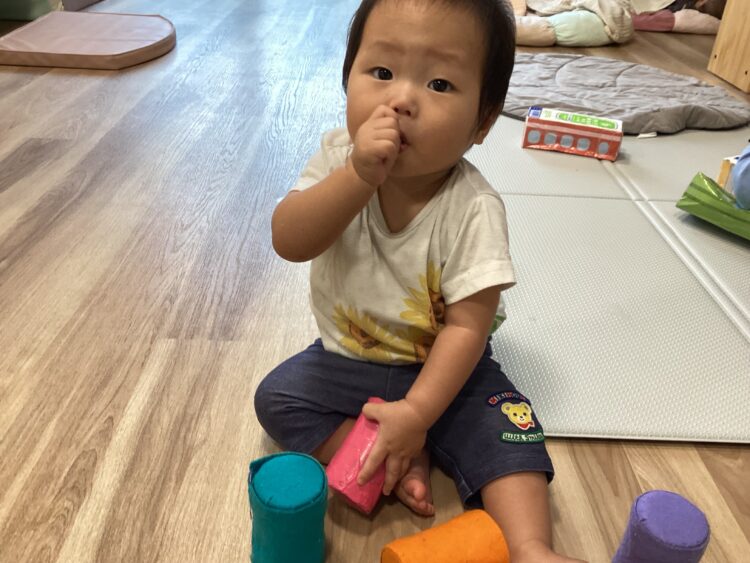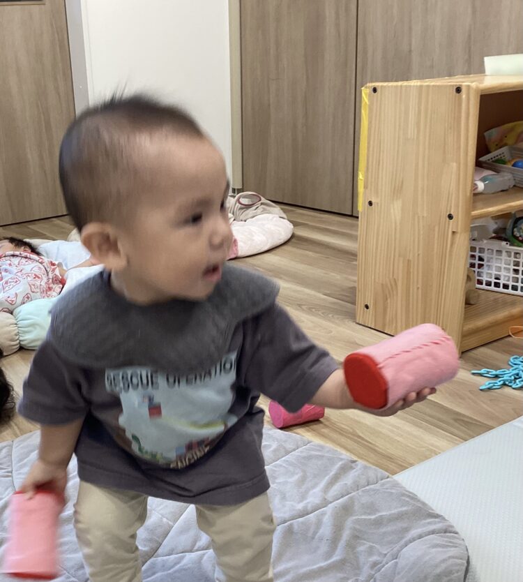 でも、子ども達は楽しことをしました音の鳴おもちゃを持っておもちゃのチャチャチャの歌を歌うと上手に振って楽しんでいました