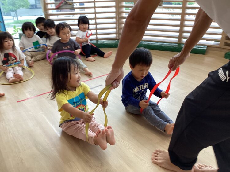 登園してくると、「今日は体操教室でしょ?」「まっちゃんせんせいまだかな〜?」と、先生がくることを心待ちにしていました😊