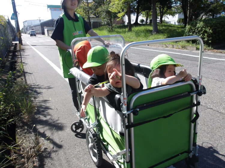 ベビーカーに乗ることにもすっかり慣れてきてお散歩が楽しめるようになってきたひよこ組さんです🐥