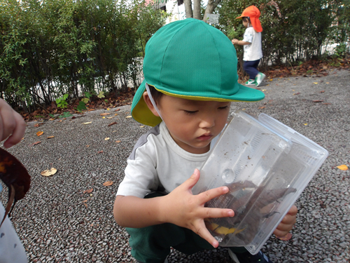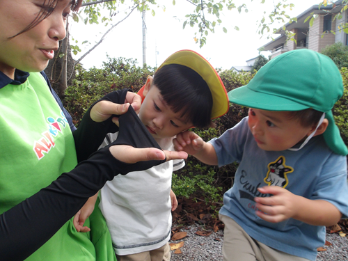 自分で捕まえただんごむしを先生に得意気に見せている姿もありました✨