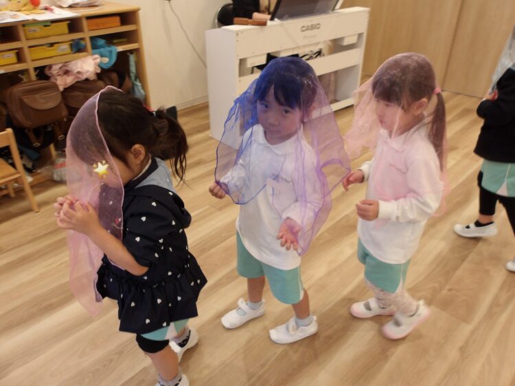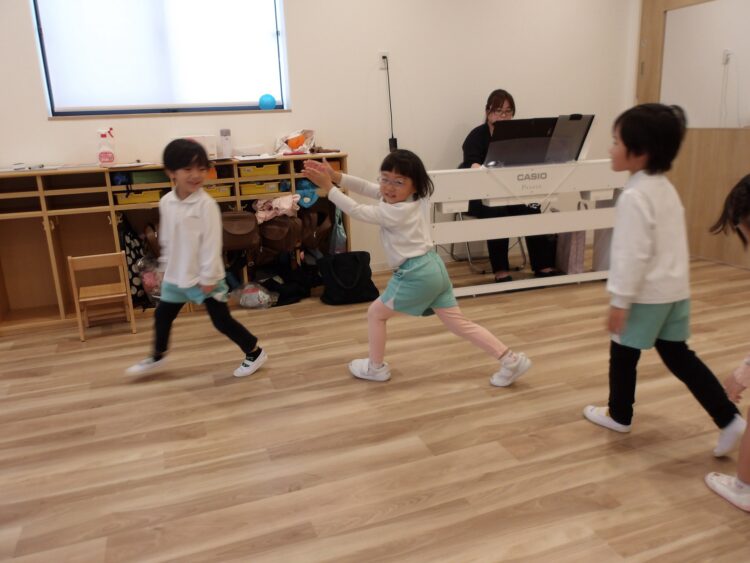 リズムやテンポの乗り方が分かってきた子が多く、ピアノの音に合わせて叩くカスタネットや手拍子の音が綺麗に合うようになってきました✨
