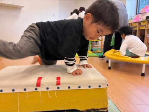 鉄棒がとても大好きで、登ってみたりぶら下がってみたして楽しんでいました