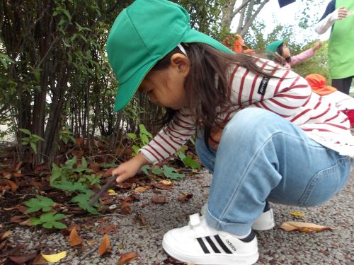 見つけた葉っぱやダンゴムシなどは保育園の虫かごにみんな大切そうにいれていました🤭