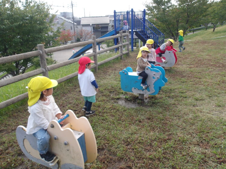うさぎ組は交代しながらスプリング遊具を楽しんでいました。