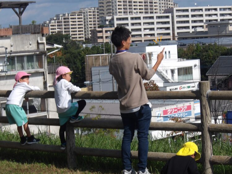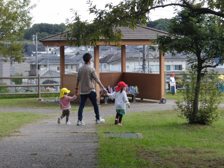 行き先を伝えると、「じゃあ今日もバッタ捕まえよ〜!」と話しながら公園へ向かいました。