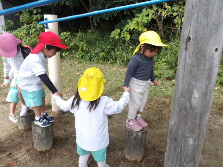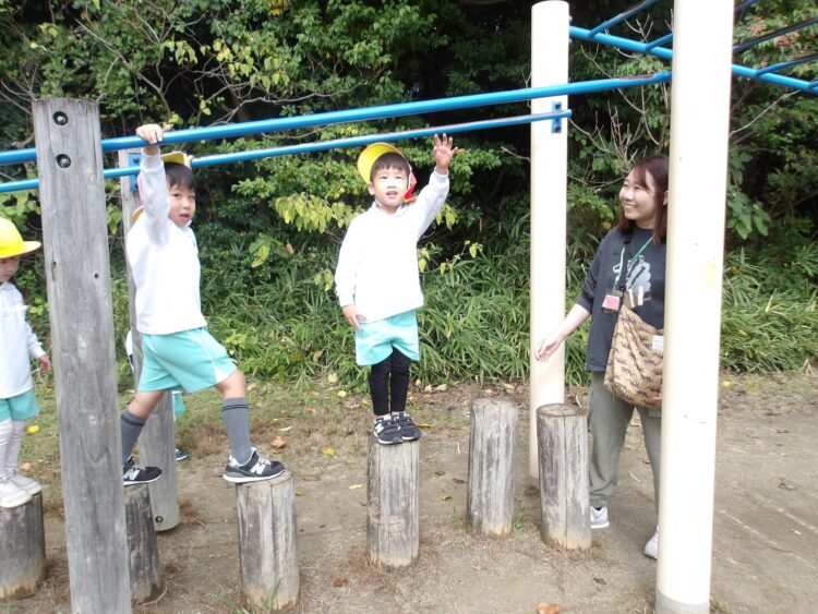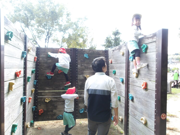 保育参加に来ていたお父さん・お母さんに手を繋いでもらったり、見守っていてもらいながら遊具に挑戦する姿もたくさん見られましたよ。