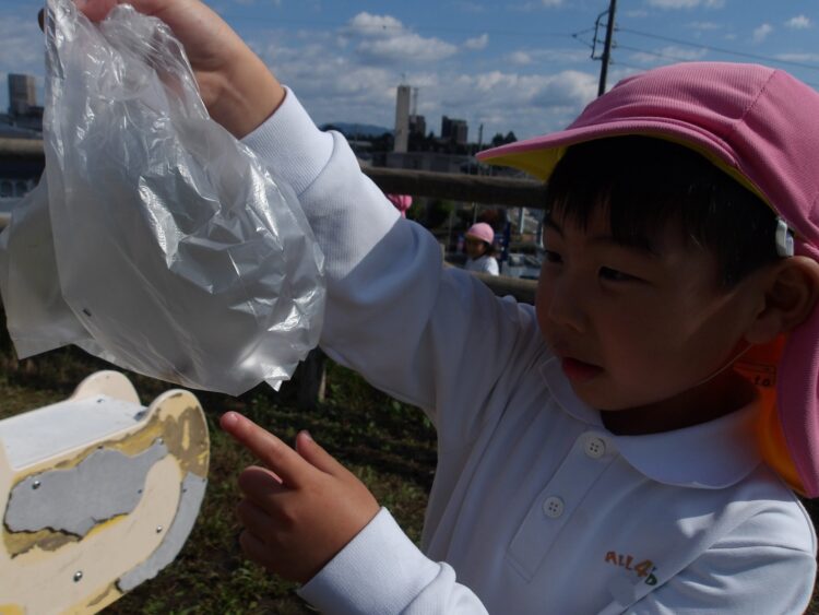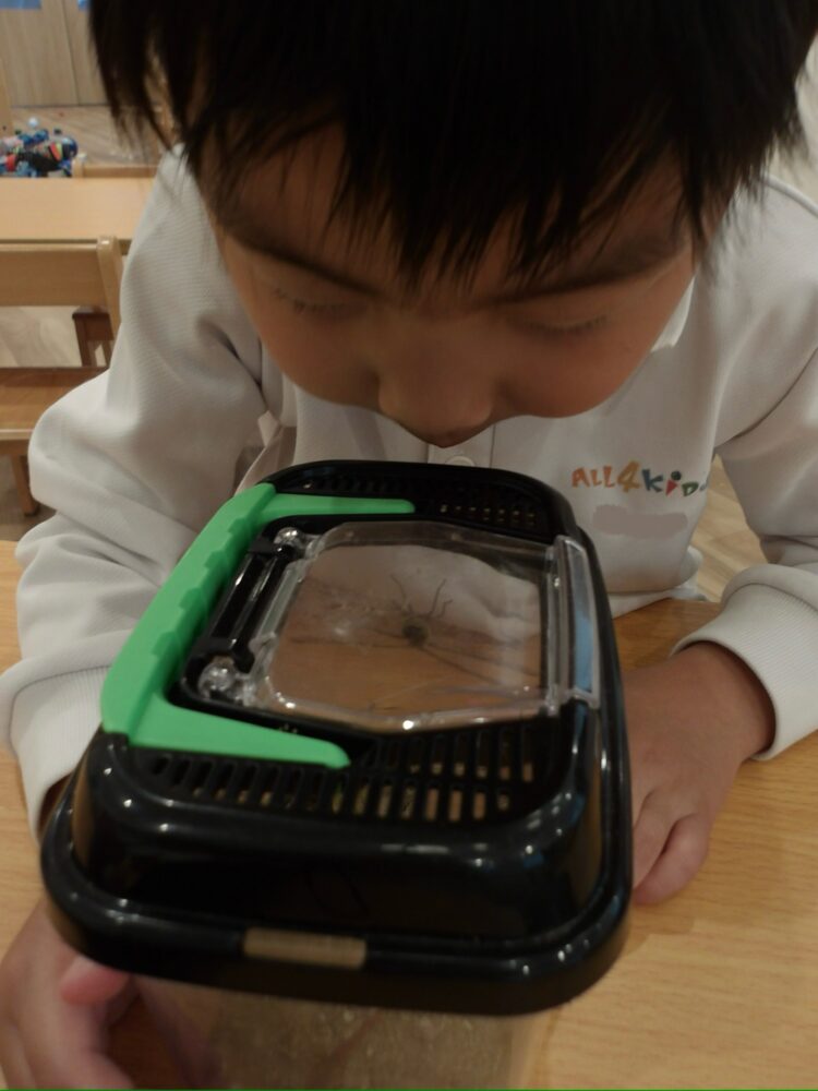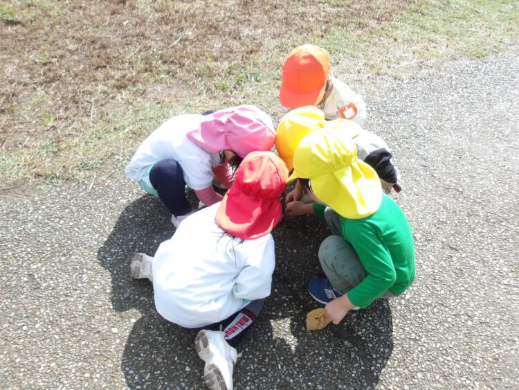 うさぎ組も足元にいる幼虫やアリに気付き、捕まえて観察を楽しんでいましたよ。