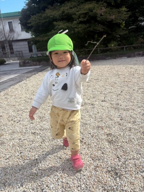 枝やどんぐりを見つけて嬉しそうに見せてくれました😊