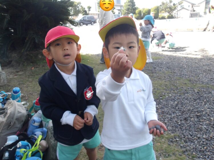 どんぐりや落ち葉🍂を拾って集めたり、きのこ🍄を見つけて木でツンツンしてみたり、鬼ごっこをして元気よく走ったりと存分に楽しみました☺️
