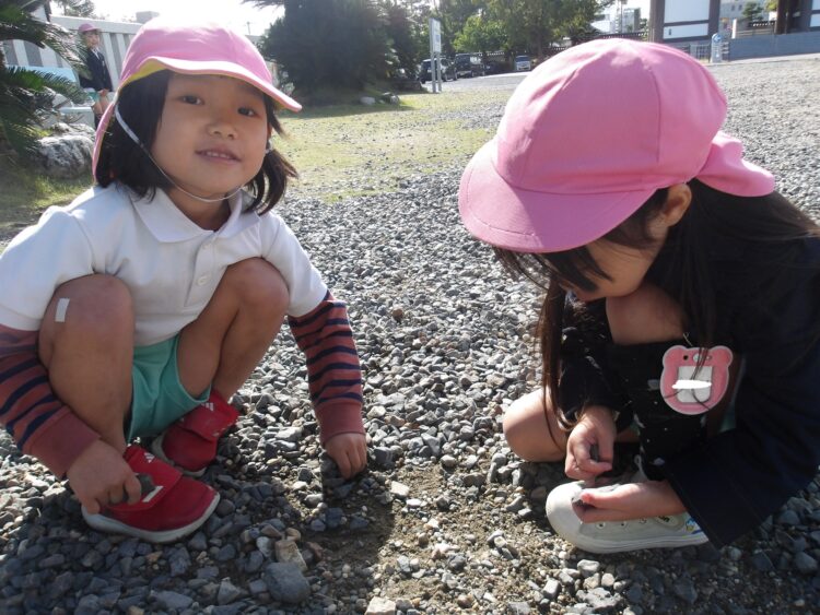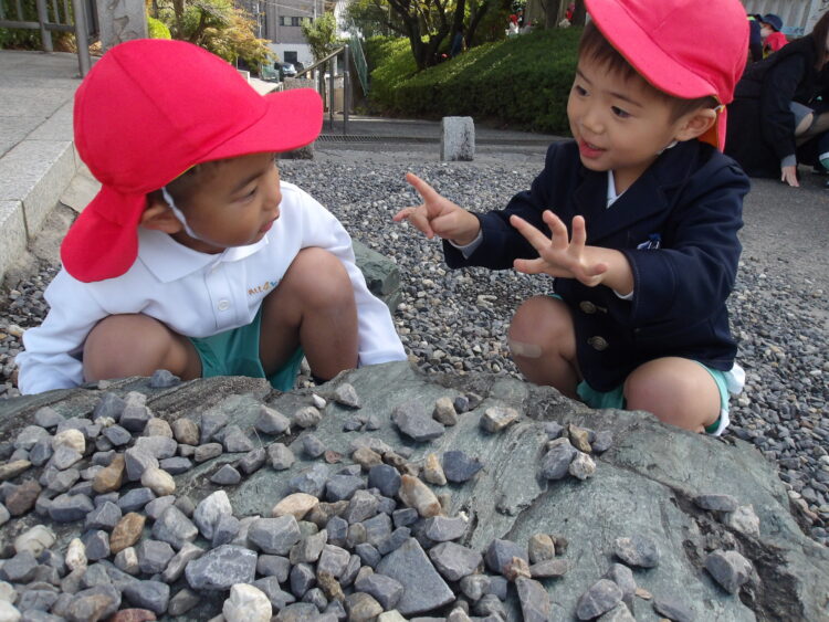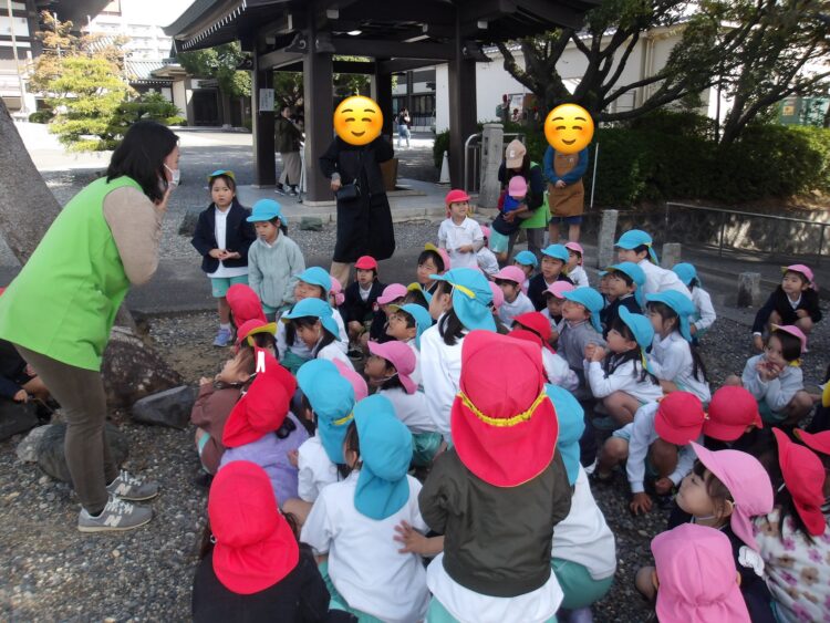 お友だちとの会話を楽しみながら歩き、日泰寺に着くとすぐに好きな遊びをし始めました![]()