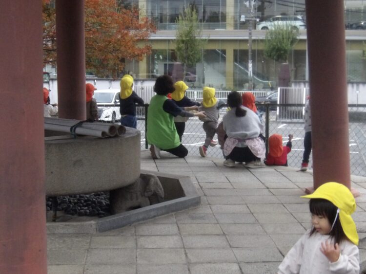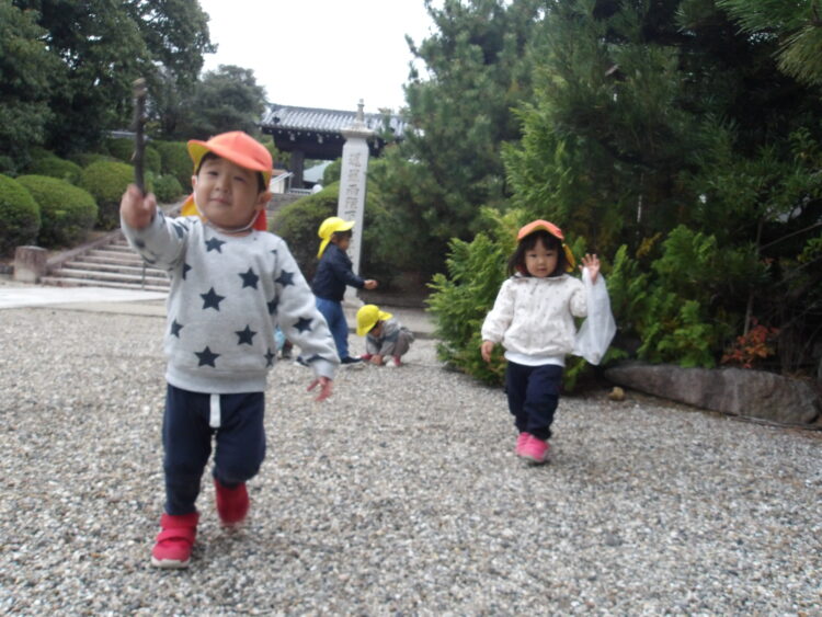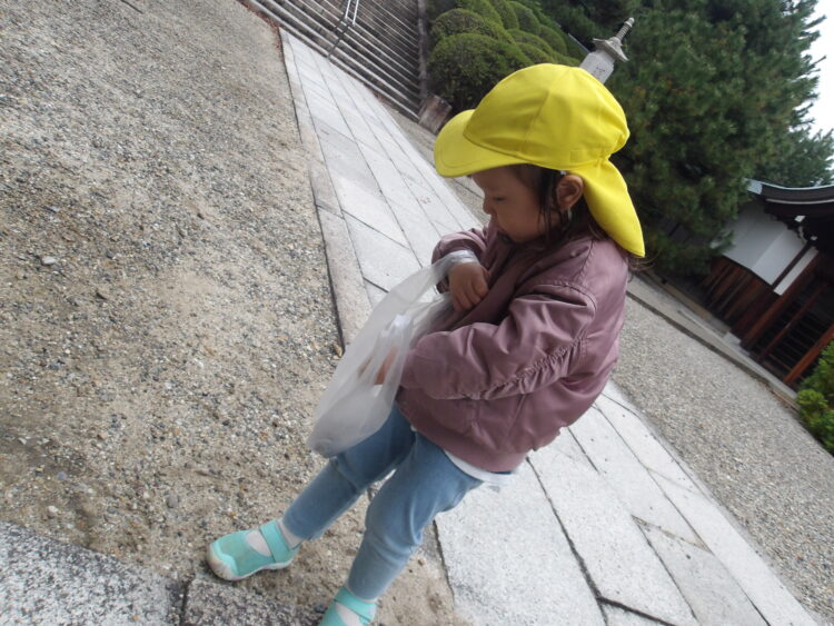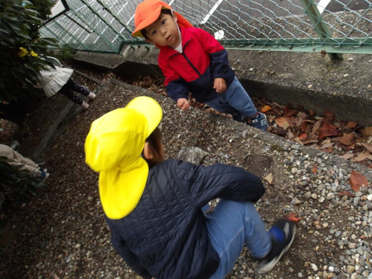 歩ける子は保育士と手を繋いで園まで帰りました![]()