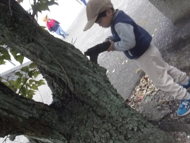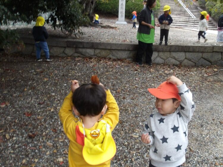 先生袋をもらってどんぐりや葉っぱ🍂🌿な、松ぼっくりを拾って入れてみたり、