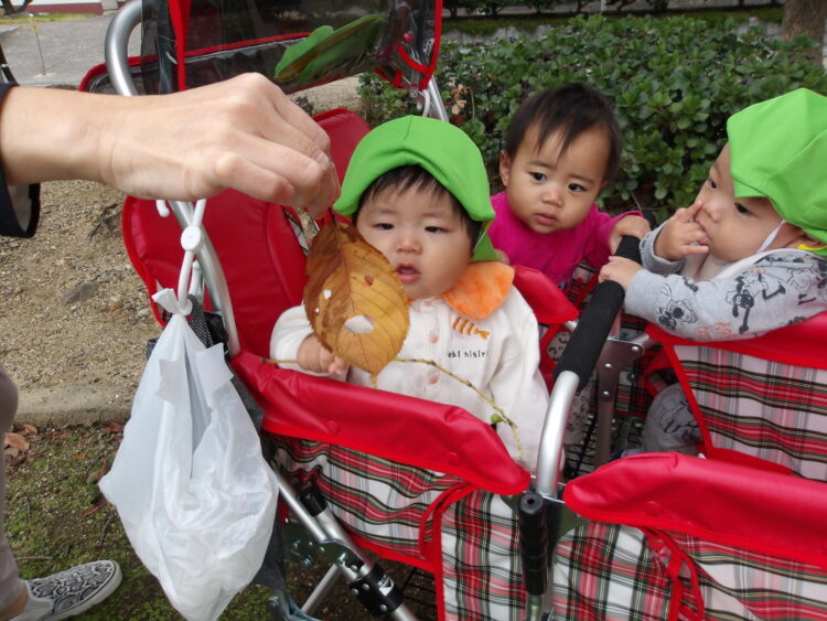 ひよこ組は木の実や葉っぱに興味津々で大事そうにずっと持ってました![]()