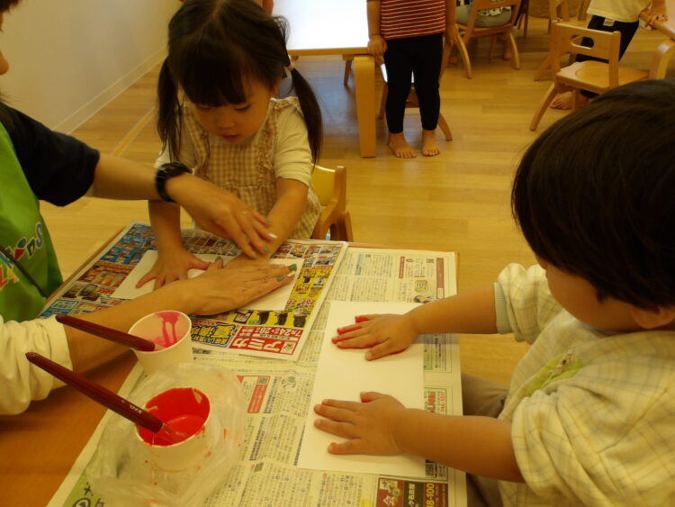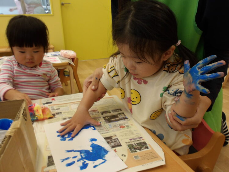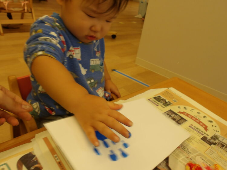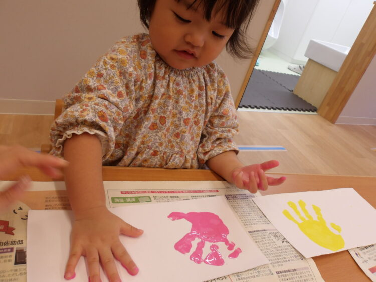 違う色で何枚も手型を押して楽しんでくれるお友だちもいました😊