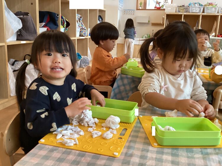 お部屋では、粘土あそびやシールを貼ったり ボールプールやロディに乗ったり 思い思いに好きな場所を選んで過ごせましたね![]()