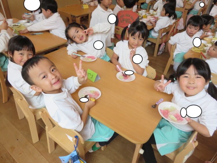 給食の後にみんなで食べましたよ!