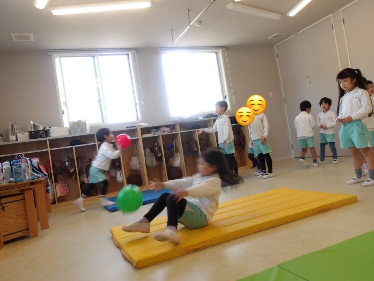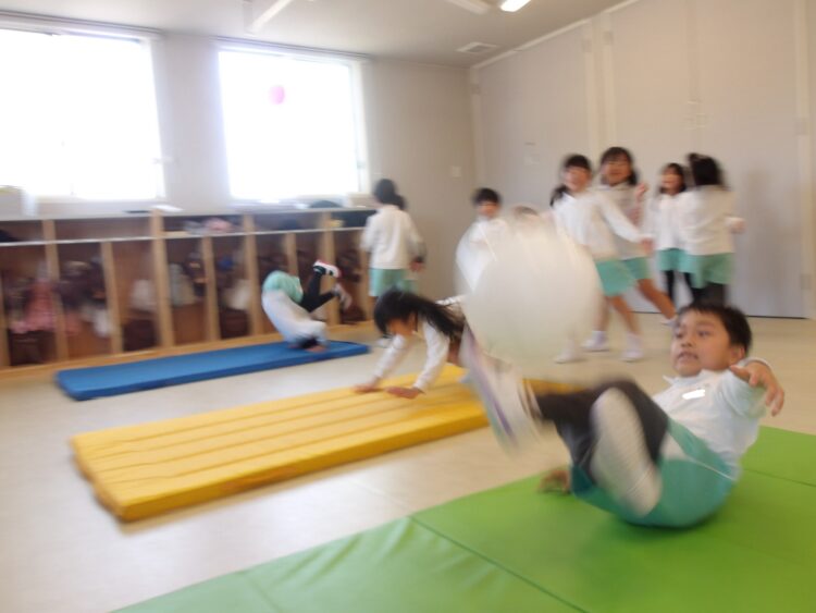 たいよう組さんは風船を投げて前転をし、落ちてきた風船をキャッチしました!難しかったですが諦めずに挑戦していました✨