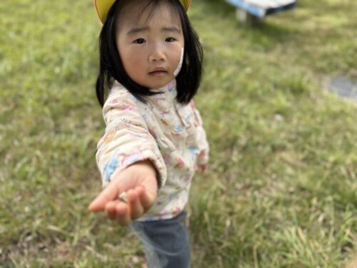 「先生見て❗️ジャーン‼️」と手の中にはハナミズキの赤い実が👀「どこにあったの❓」と聞くと、「こっちだよ先生おいでおいで」と教えてくれました✨