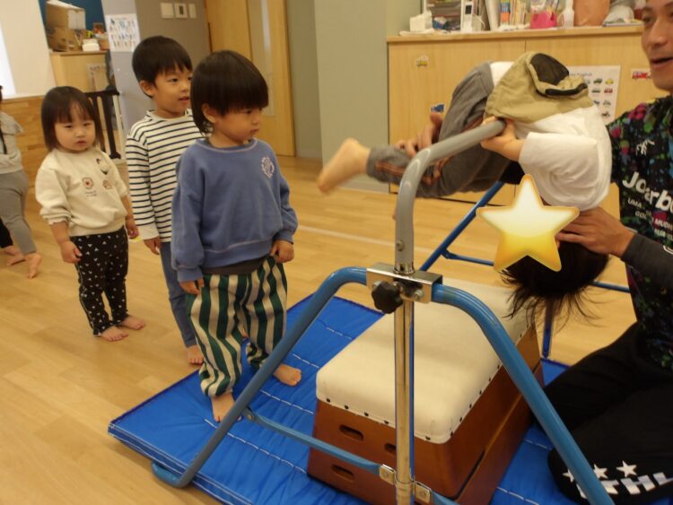 まだまだ逆さ感覚が怖い子もいましたが、子どもたちのペースで取り組んでいってくれたらと思います![]()
