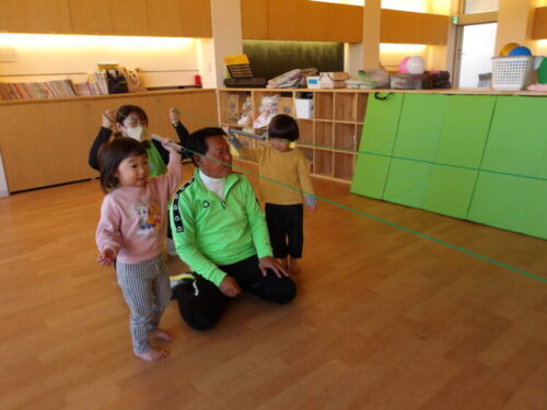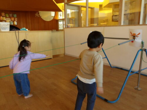 最後は、紐についた棒を投げるよ😄 棒が進んでいって・・・