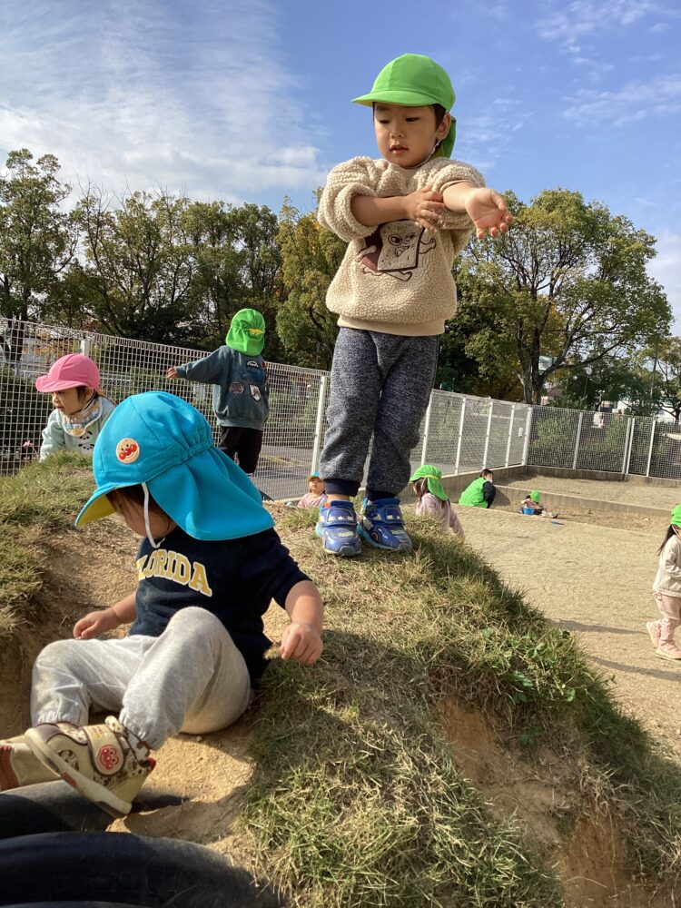 今日は公園と園庭で遊びました!