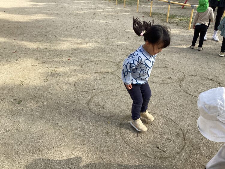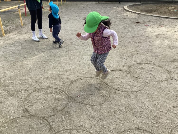 地面に描いた丸の中へ上手にジャンプ![]()