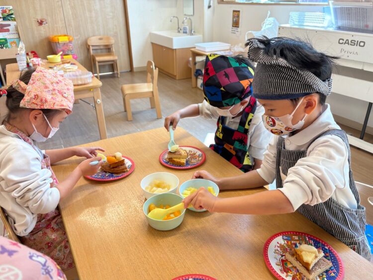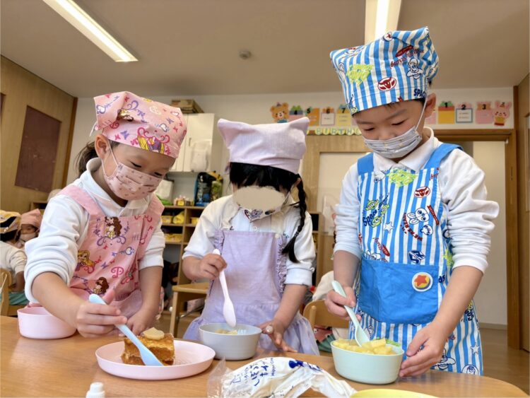 お世話になっている先生たちへのプレゼント用に盛り付けるお友だち😊💓