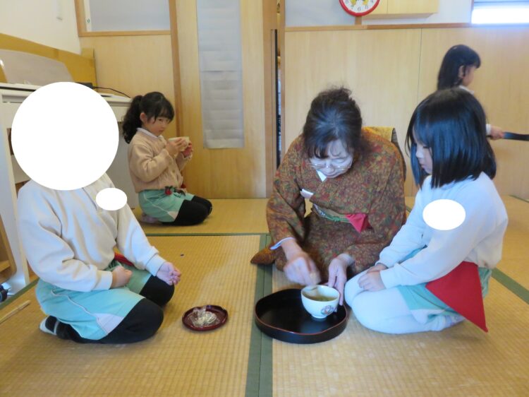 お友だちの表情を見ながら丁寧にお茶をたてるお友だち✨