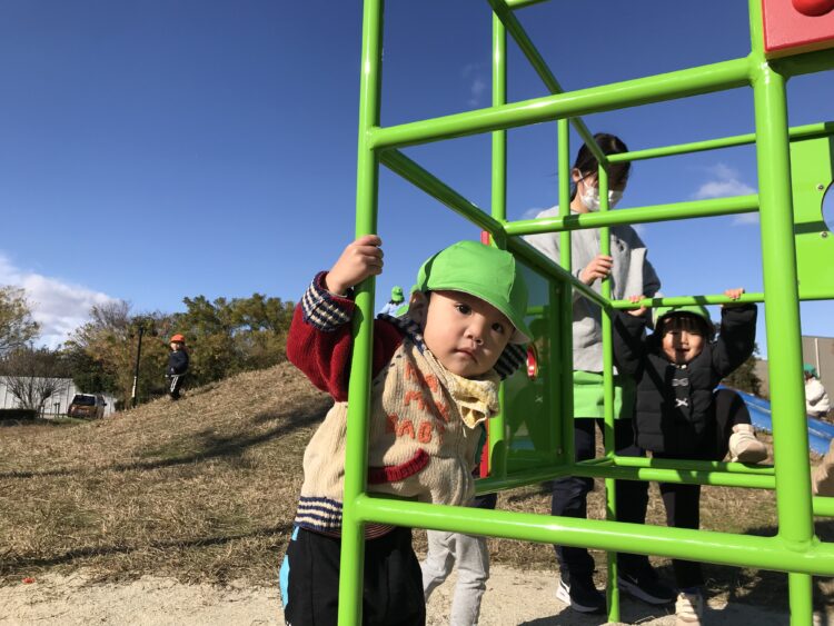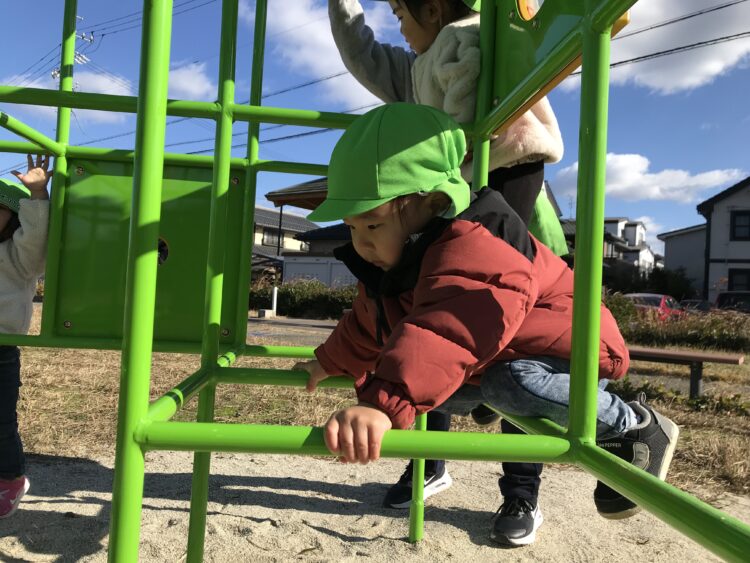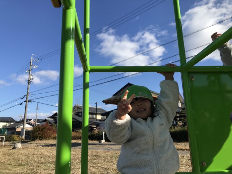 新しいジャングルジムになっていて、チャイルドの子ども達サイズで満喫です。