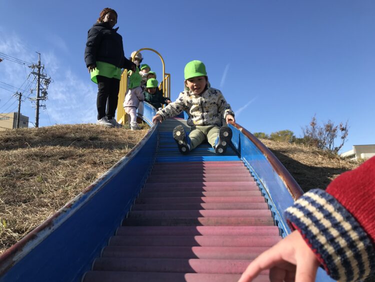 冷たい空気に触れながら、子ども達は元気いっぱい!!