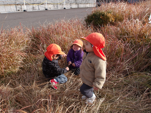 こどもたちの背よりも少し高いはっぱが風などで倒されてしまって