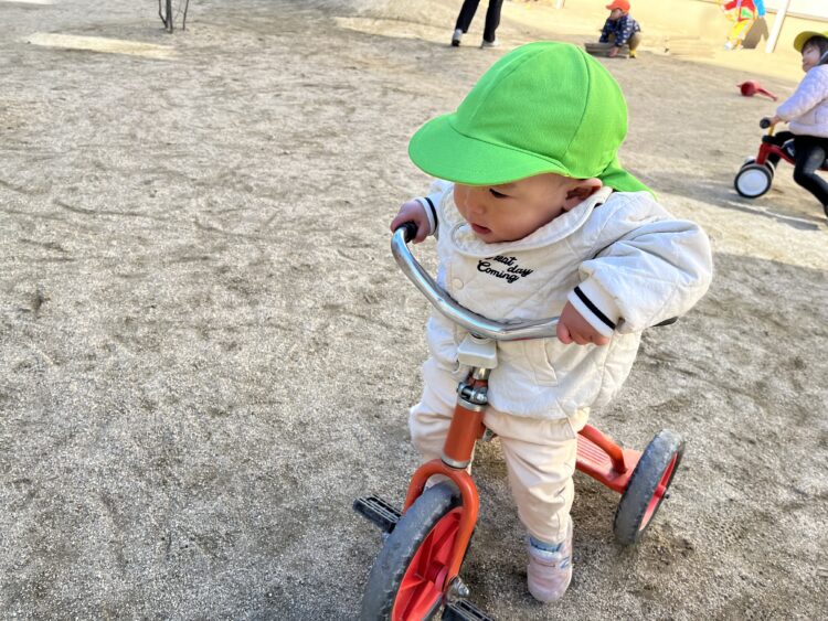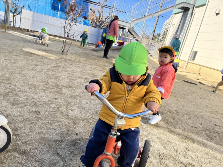 三輪車をお友達のところに運んでいます🥰