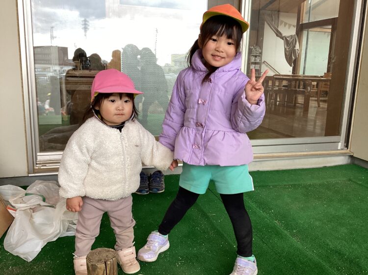 遊んでいる途中であられが降ってきましたが、寒さにまけずみんな元気いっぱいです![]()